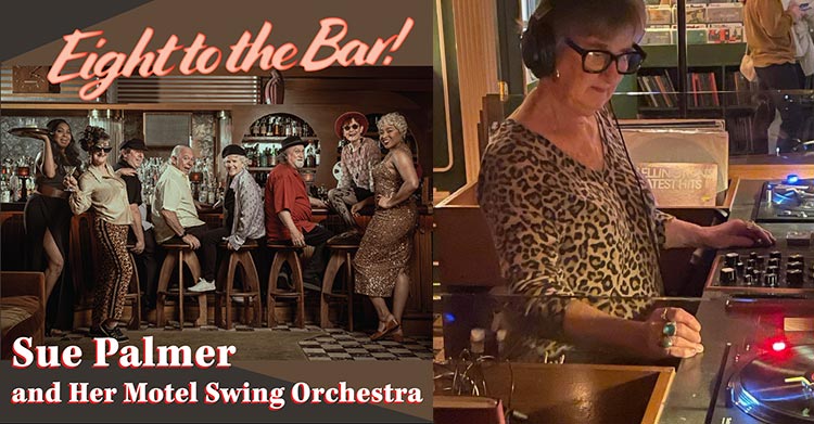This Martin Luther King Jr. Day Sue Palmer & her Motel Swing Orchestra will celebrate their new vinyl album, "Eight to the Bar," at the beautiful Part Time Lover (3829 30th St), whose art deco cocktail bar and listening room are pictured on the album cover! Join us and get comfortable on the soft chairs and couches where we'll be spinning our new record!